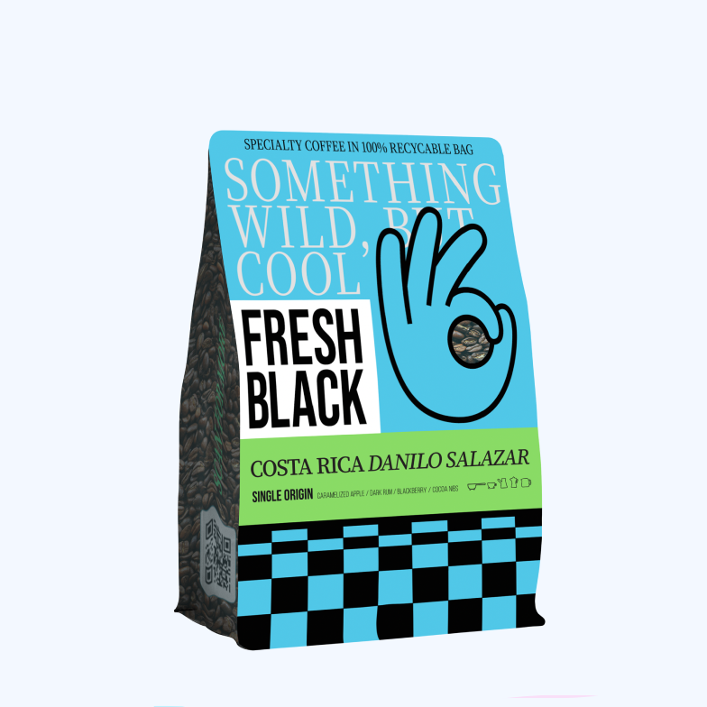 Ta partia pochodzi z Kostaryki, gdzie na wysokości 1700 metrów n.p.m. rolnik Danilo Salazar uprawia odmiany Caturra i Catuaí. Kawa jest uprawiana w cieniu i przetwarzana w sposób naturalny, z przedłużonym suszeniem na słońcu. Rezultatem jest słodka, pełna filiżanka, w której każda jagoda w pełni oddaje swój charakter.